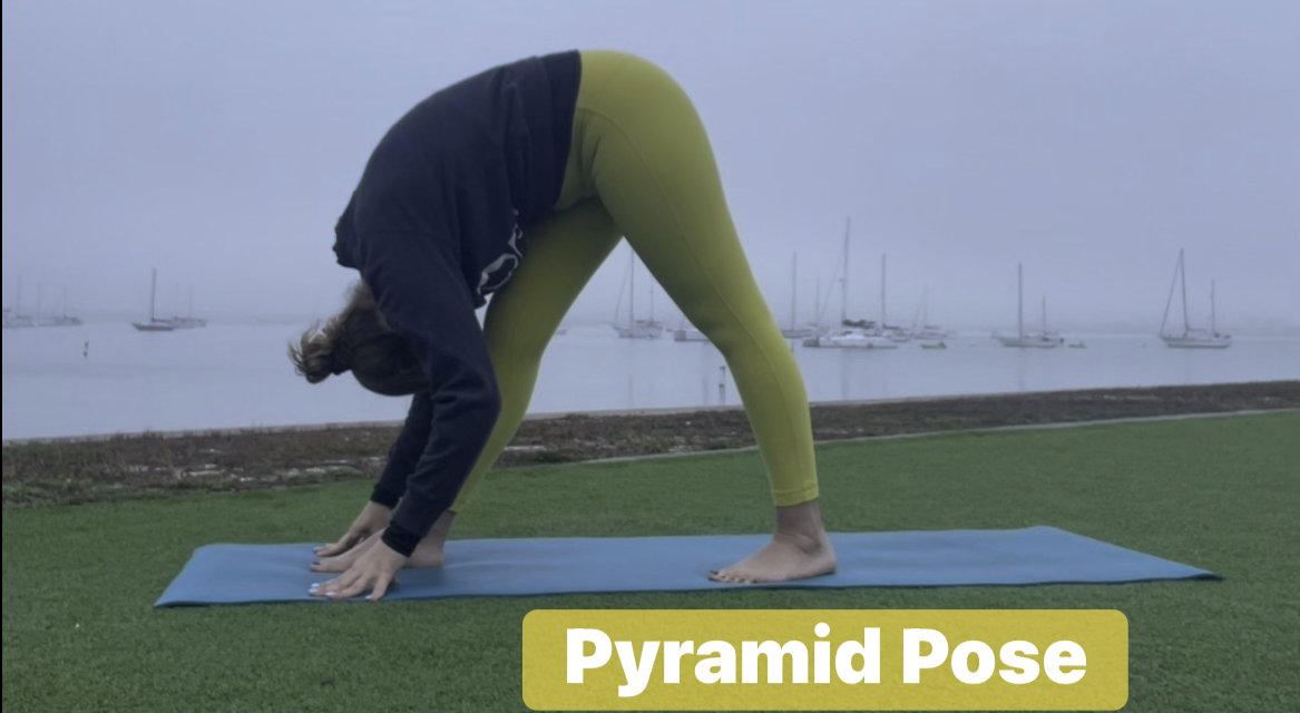 Yoga Pyramid Pose Pyramid Pose: A Powerful Standing Forward BendPyramid Pose, known as Parsvottanasana in Sanskrit, is a deep standing forward bend that combines strength, balance, and flexibility in one elegant posture. This intermediate yoga pose offers a wonderful stretch for the entire back of your body while building stability and focus.How To Do Pyramid PoseStart standing at the top of your mat, then step your left foot back about three to four feet. Keep both feet pointing forward with your hips squared toward the front of the mat. Ground down through both feet, keeping your legs straight but not locked. Inhale to lengthen your spine, then exhale as you hinge forward from your hips, bringing your torso down over your front leg. Your hands can rest on blocks beside your front foot, on your shin, or on the floor if you have the flexibility. Keep your spine long rather than rounding your back to go deeper.Amazing BenefitsPyramid Pose delivers a fantastic stretch to your hamstrings, calves, and hips, which is especially helpful if you sit for long hours during the day. The pose strengthens your legs and improves balance while teaching you to maintain stability in an asymmetrical position. It also gently stretches your spine and shoulders, helping to relieve tension that builds up from poor posture. Many people find this pose calming for the mind because the forward fold naturally has a soothing effect on the nervous system.Tips For BeginnersIf touching the floor feels impossible, don't worry. Use yoga blocks under your hands to bring the floor closer to you, allowing you to keep your spine long and straight. Bending your front knee slightly can also make the pose more accessible while you build flexibility. Keep your hips level and facing forward rather than letting them open to the side, even if it means you can't fold as deeply. Remember that alignment matters more than depth.Common Mistakes To AvoidThe biggest mistake people make in Pyramid Pose is rounding the spine to try to get their head closer to their leg. This defeats the purpose and can strain your back. Always prioritize keeping your spine extended, even if it means you stay more upright. Another common error is letting the back hip open up instead of keeping both hips squared forward. This might feel easier but reduces the effectiveness of the stretch and can create imbalance.When To PracticePyramid Pose works beautifully as part of a standing sequence in your yoga practice. It's excellent for warming up before deeper hip openers or for cooling down after more intense poses. You can also practice it on its own whenever you need to stretch tight hamstrings or release tension in your back and shoulders.This powerful pose reminds us that strength and flexibility go hand in hand, and that sometimes the most challenging positions teach us the most about patience and listening to our bodies. Hold each side for five to ten breaths, and notice how your body gradually opens up with regular practice. |